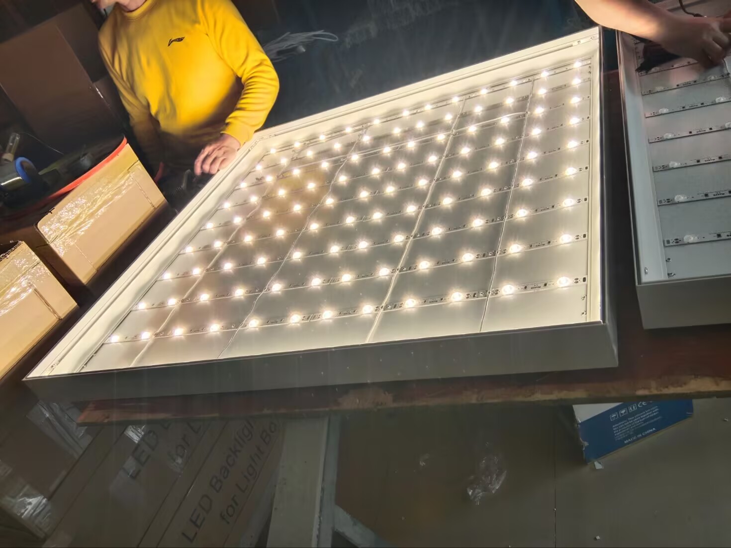 匯百美15年,有3000㎡的鋁材生產基地,LED光源生產線以及拉布燈箱成品生產線